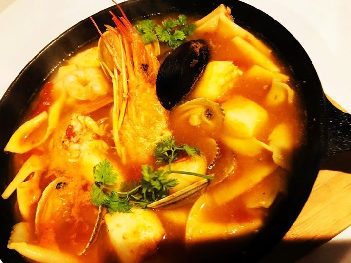 海鮮トマト煮に入れた、群馬名物おっきりこみ風❤️