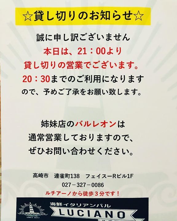 #ルチアーノ #luciano #パスタ #海鮮 #記念日 #魚介 #イタリアン #バル #女子会 #金沢港 #新年会 #群馬 #パーティー #高崎市 #高崎 #歓迎会 #高崎駅 #高崎駅西口 #二次会 #バルレオン #激辛料理 #ワイン #送迎会 #ビール #飲み会 #同窓会 #オシャレ #野菜ソムリエ #上州牛