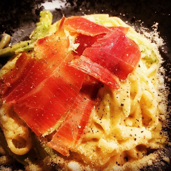 『アスパラと、生ハムのカルボナーラ』