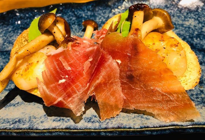 ぷりぷりエビときのこ、生ハムのブルスケッタ🎵